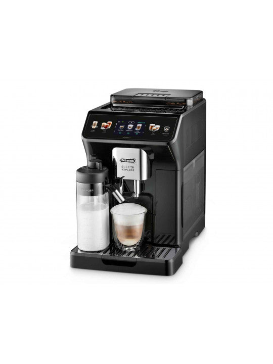 DeLonghi ECAM450.65.G The coffee machine is equipped with a 3.5" titanium touch screen, and the body of the machine is made of stainless steel. The machine has a removable milk container that can be washed in a dishwasher.