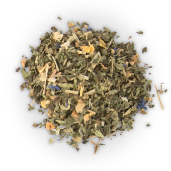 Melissa / verbena leaves / linden flowers / lemongrass / chamomile / peppermint / sage leaves / thyme / anise / rose petals / cornflower / sunflower